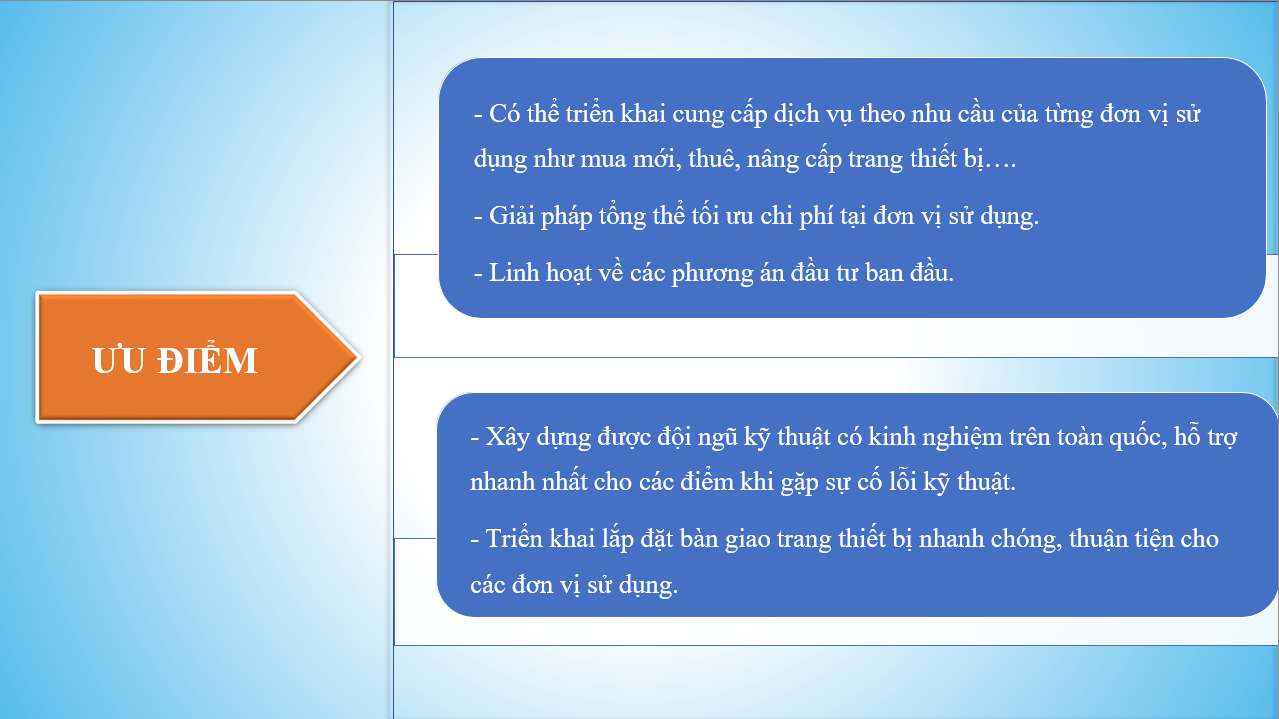 • Cung cấp giải pháp nâng cấp thay thế trang thiết bị đã có sẵn nhưng không sử dụng được cho nhà Trường.